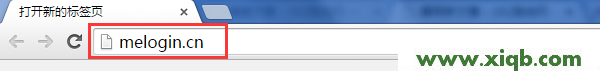 1、在浏览器中输入:melogin.cn 并按下回车键。(如果在浏览器中输入melogin.cn后,不能打开设置页面,请点击阅读文章:melogin.cn打不开的解决办法)