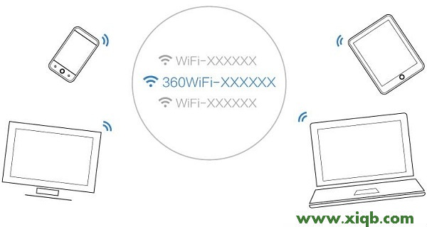 如果准备用手机、笔记本电脑来配置360路由器mini,需要先把WAN口连接宽带网线(宽带猫、光猫);然后手机/笔记本电脑搜索并连接前缀名为“360WiFi”的信号。