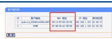 从下面的图片中,我们可以明显的看到连接到路由器设备的MAC地址以及获取到的IP地址,那么此时,选定我们要进行限速电脑的MAC地址,然后复制该设备的MAC地址。复制MAC地址的时候,我们只能使用Ctrl+C按钮进行复制。